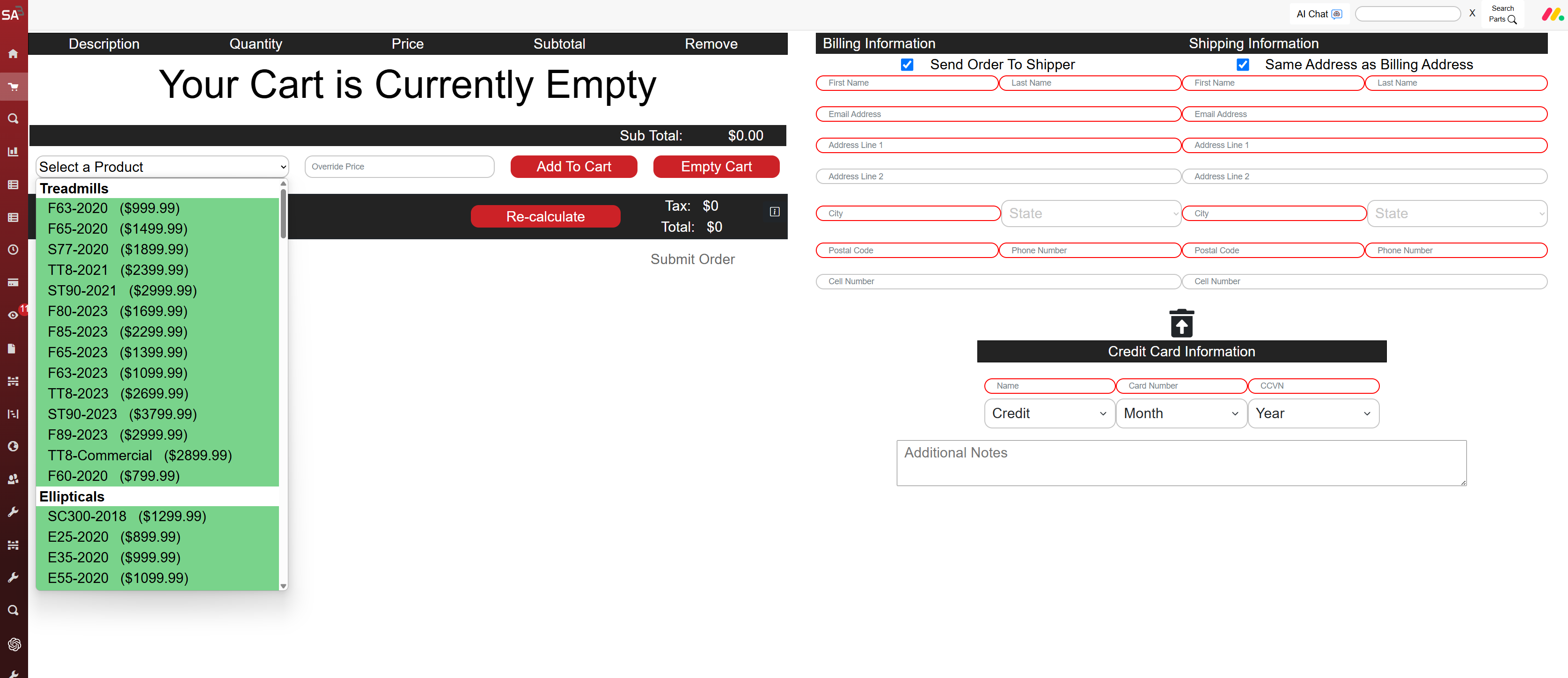This is a page where users can create new orders. This includes a cart to input products and a integration with stripe to trasnact a purchase.